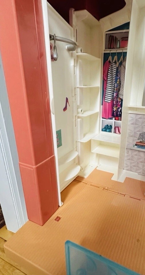 Included Items: Assortment of accessories, furniture, oven, and an additional closet play-set (seen on the third floor).