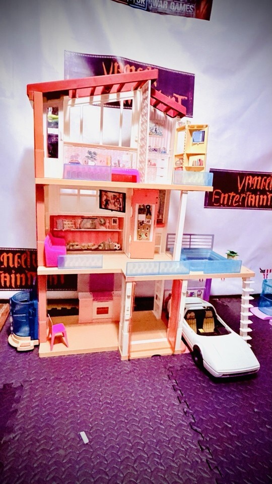 Barbie Dreamhouse 3 Story Dollhouse Furnished Pool Elevator 1986 Ferrari Set