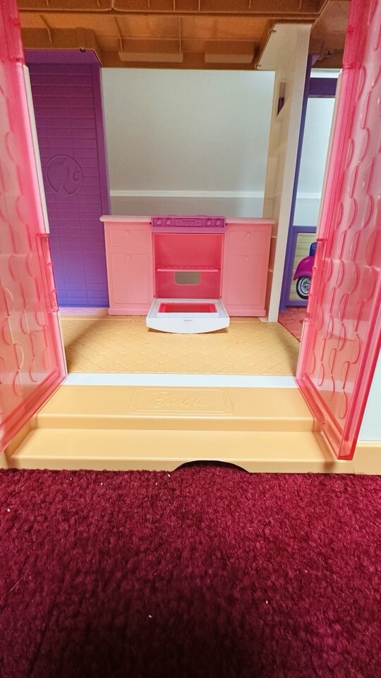 Barbie Dreamhouse, Barbie Dream Townhouse, Mattel Barbie House, Barbie dollhouse with elevator, 3-story Barbie townhouse, Barbie doll furniture lot, Barbie accessories, furnished Barbie house, Barbie playset lot, vintage Barbie house, Barbie pool area, dollhouse with furniture