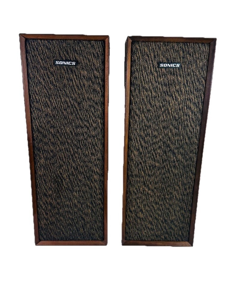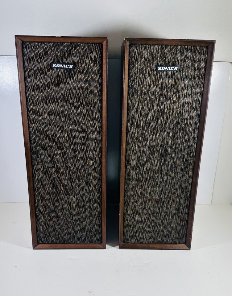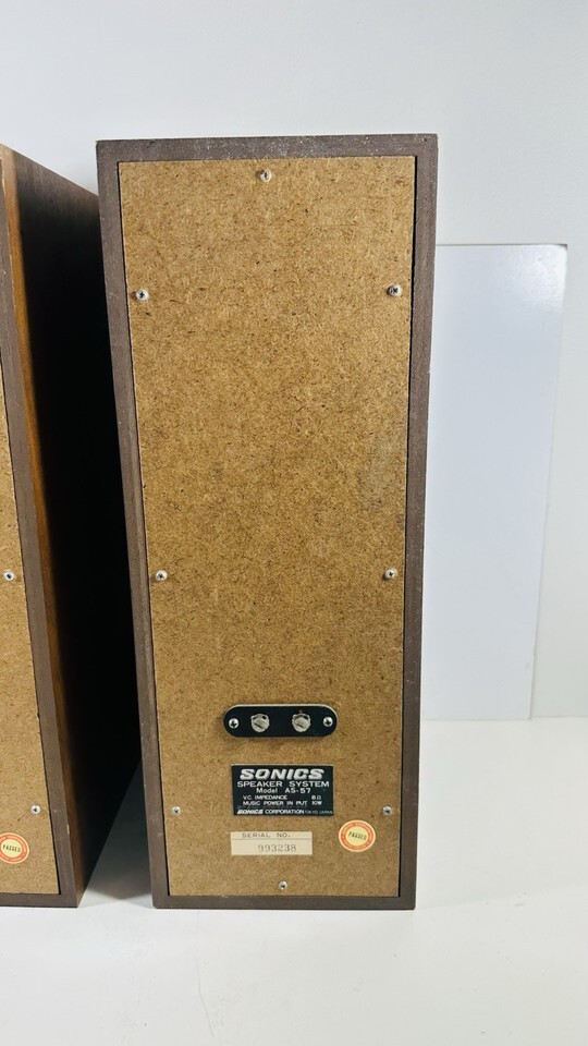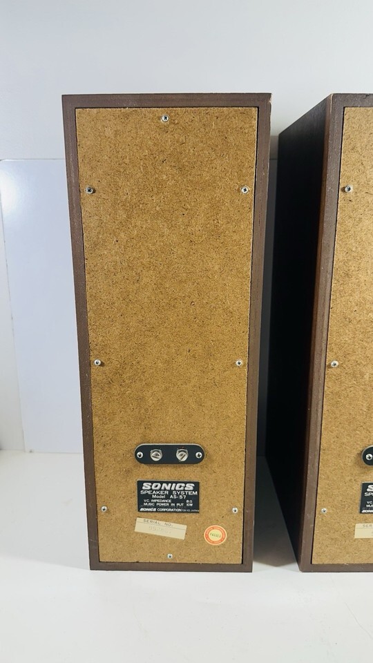 vintage stereo speaker set, Japanese hi-fi equipment, 1960s Sonics speakers, retro speaker collection, classic audio components, tested Sonics speakers, 8 ohm 10 watt pair, collectible retro stereo, Sonics speaker collectors, AS-57 audio set