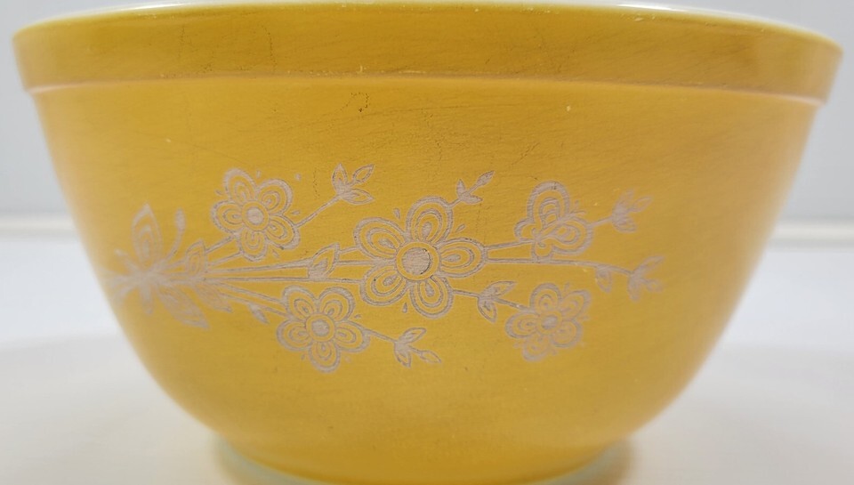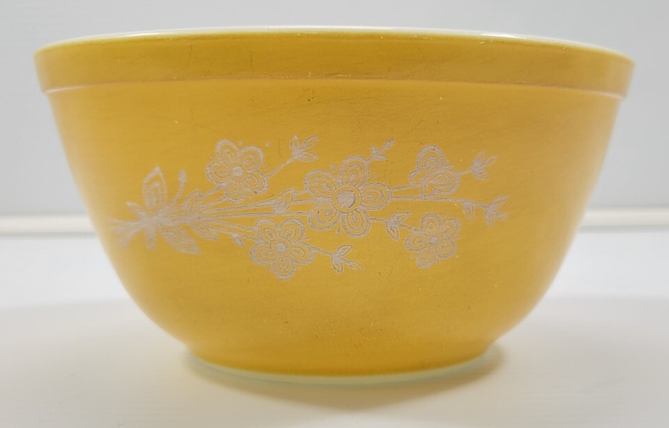 *CB4) Vintage Pyrex Butterfly Gold Yellow Nesting Round Bowl 402 1.5qt