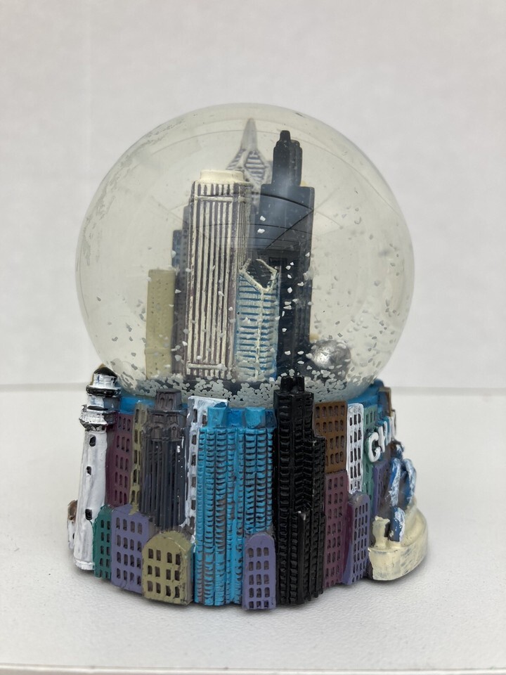 you are bidding on one preowned Chicago snow globe. It is approximately 3 1/2 inches tall and 3 inches wide.