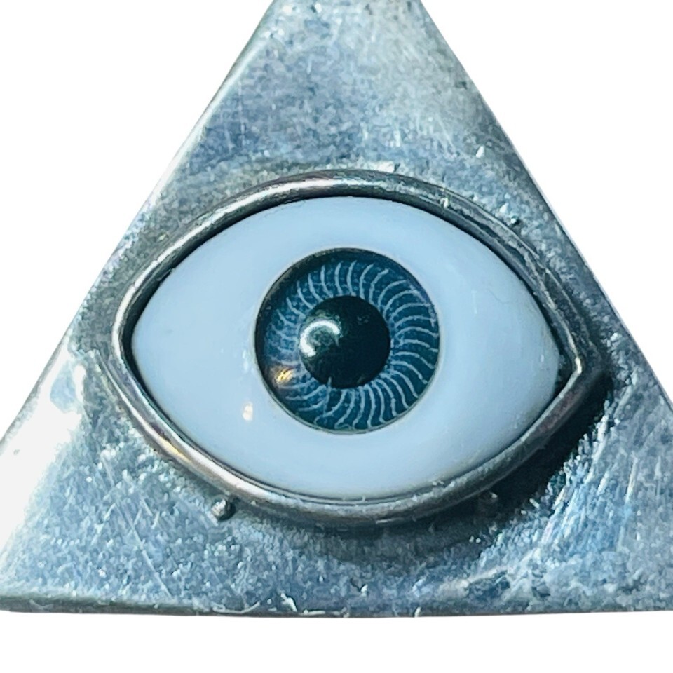 Vtg Silvertone All Seeing Eye Triangle Pendant Charm