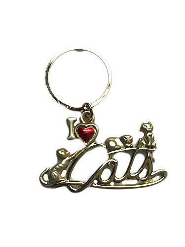 AJC Co. Gold - Plated I Love Cats Keychain Kitten Kitties