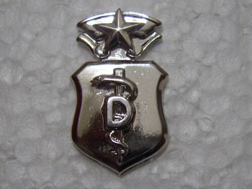 Back of device has two thin sharp pins that push through the medal ribbon drape or ribbon bar and then are bent back to stay in place.