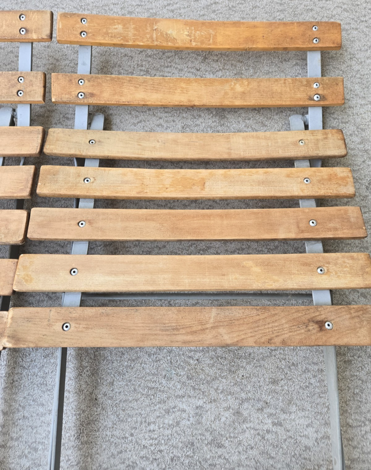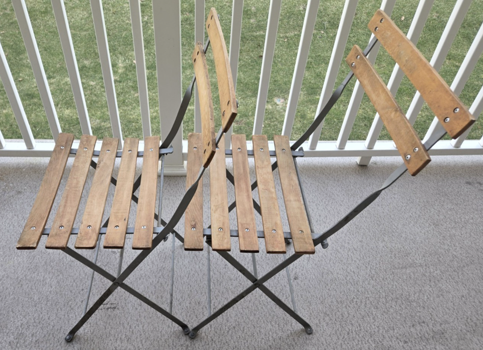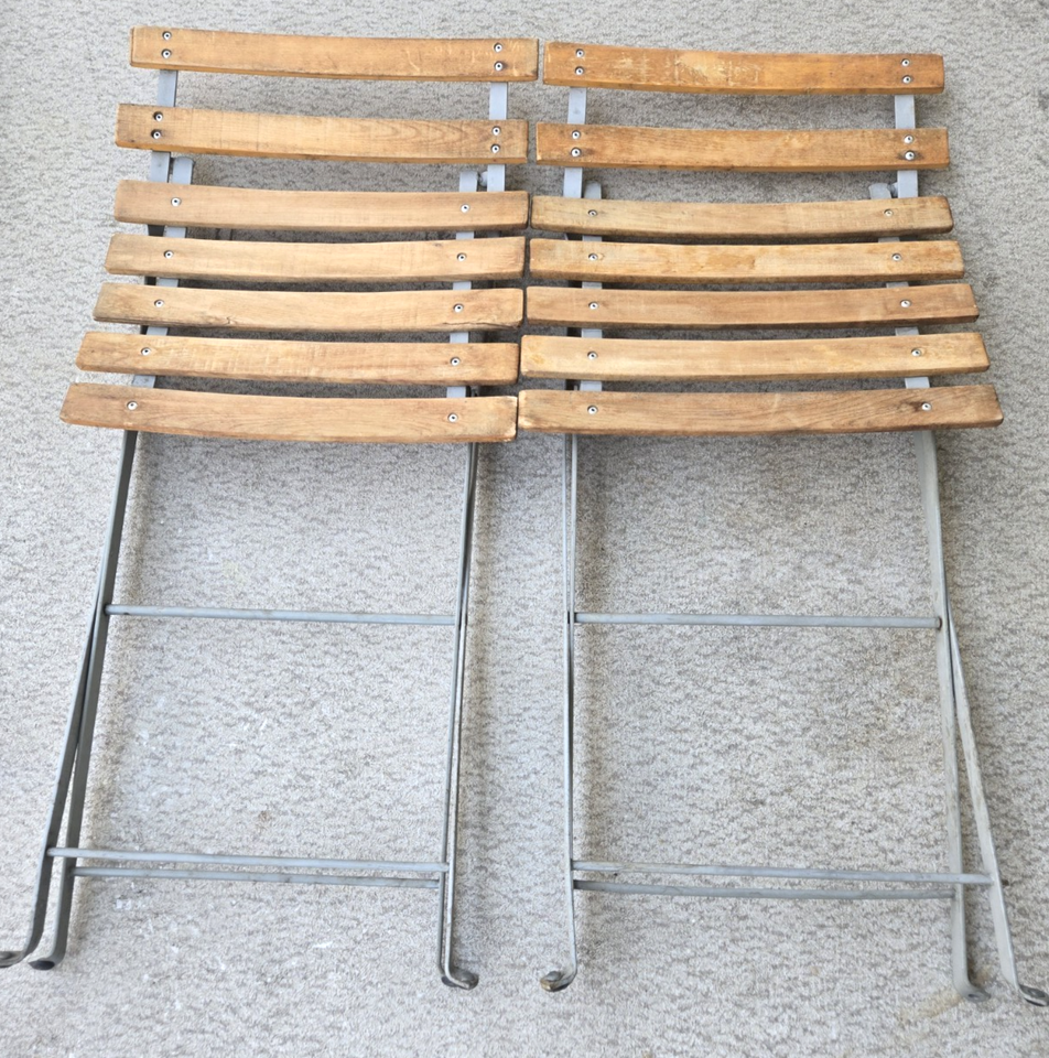 Up for bid are a pair of French Bistro style 32" wood metal folding chairs