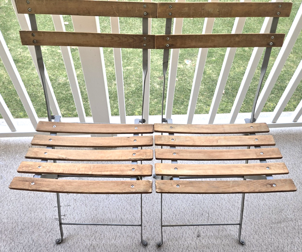 Set Of 2 Vintage French Bistro Garden Patio 32" Wood Metal Folding Chair