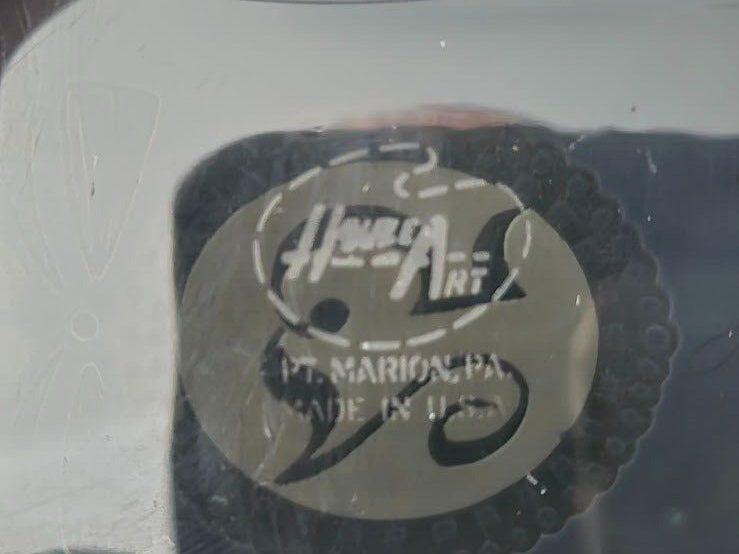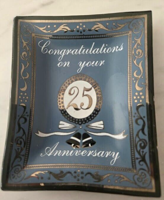 Up for bid is a vintage 1960s Houze Art Glass "Congratulations on your 25 Anniversary" trinket dish.