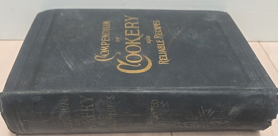 Up for bid is the 1890 first edition of the cookbook titled The Compendium of Cookery and Reliable Recipes.