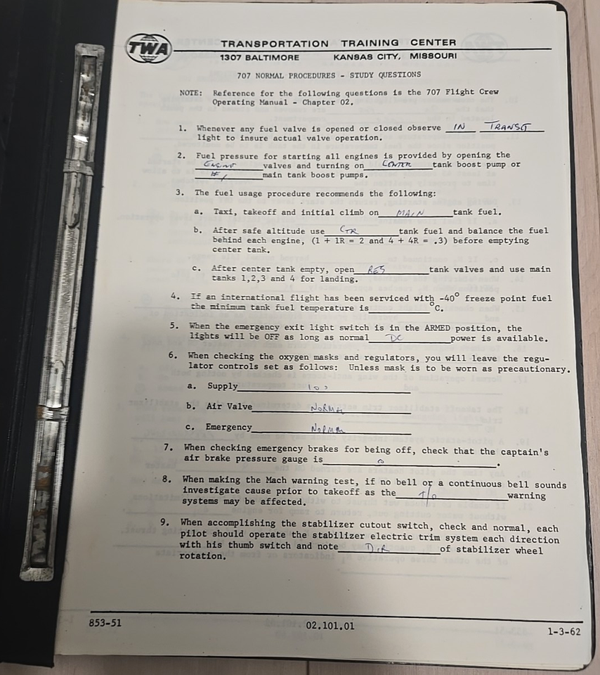 Up for bid is a used vintage TWA Transcontinental Western Air 707 Operations Manual Part II