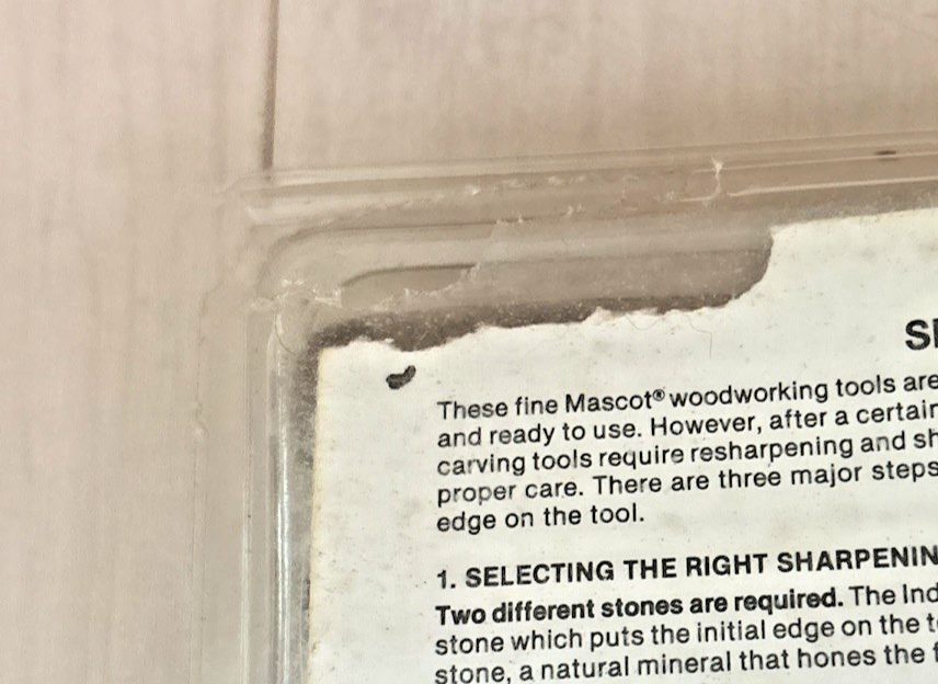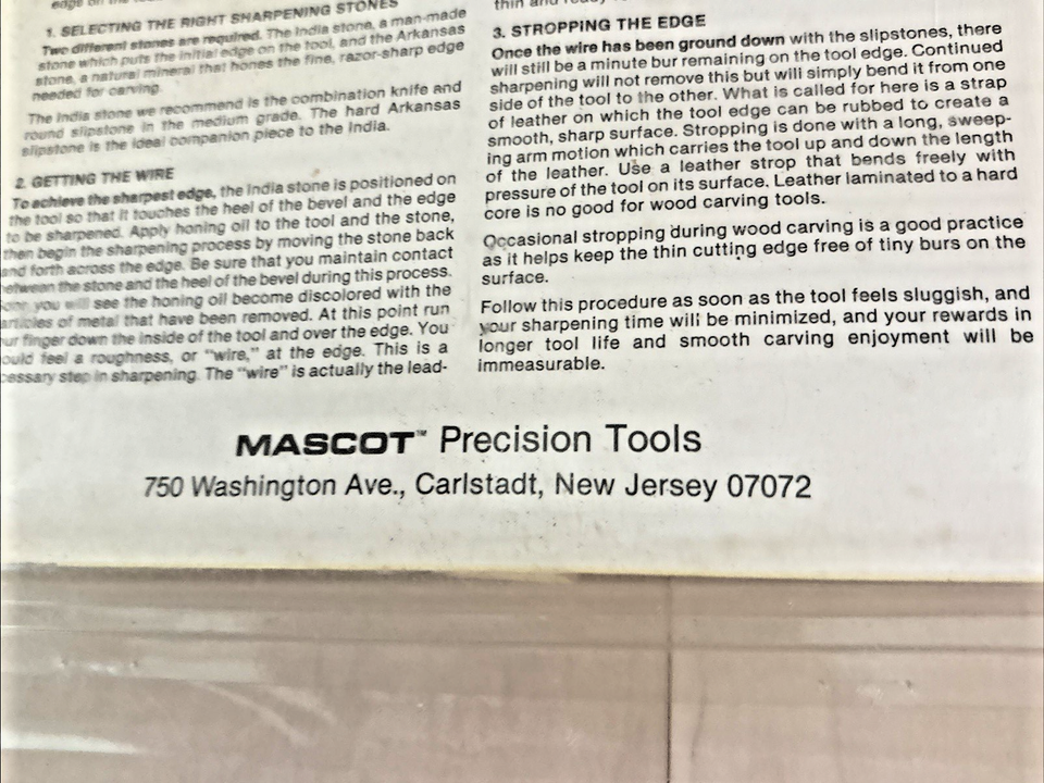 Discontinued Mascot Precision Tools Woodworking Tool Set - 5 Piece Set (Item # H862 ) in its original packaging. Mascot?s woodworking tool sets have high quality American workmanship in every tool. Each set has five basic shapes. All sets are supplied in a reusable plastic clamshell package which includes a wooden hanger for wall or workbench mounting.