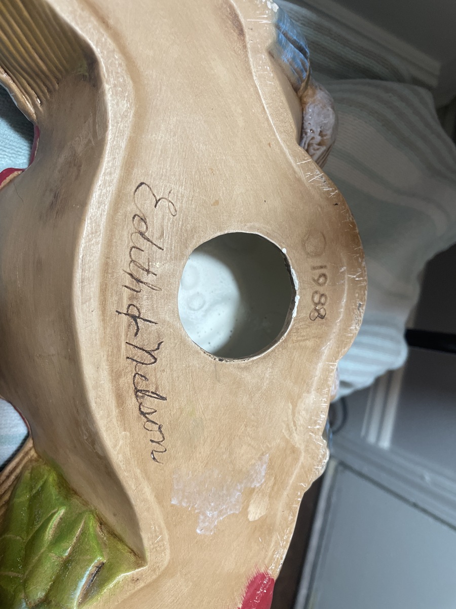 Please note: The back of the wreath is marked with a carved name and year (“Edith Nelson – 1988”), which appears to be an original ownership marking. This is not visible when displayed and adds to the vintage character of the piece.