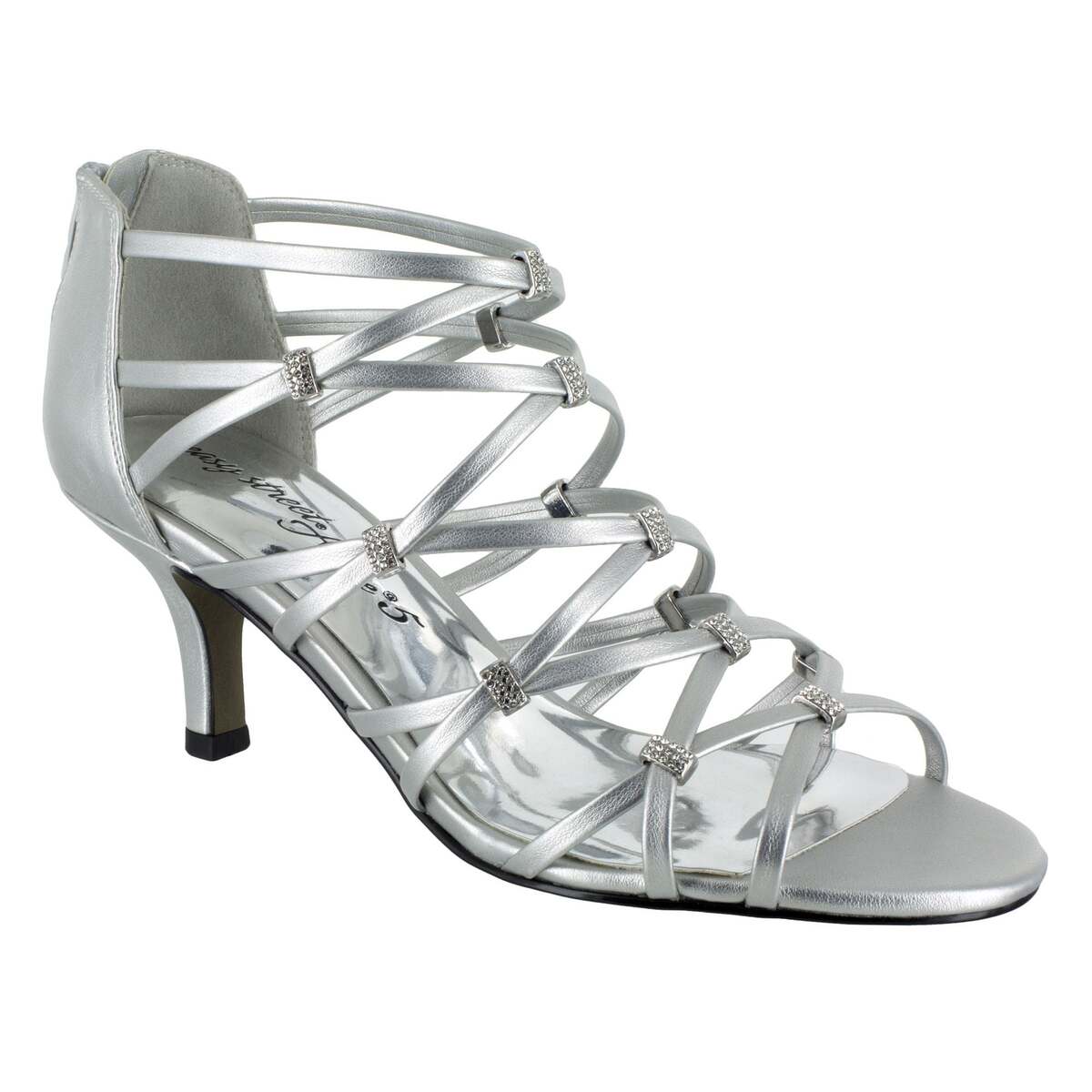 Rise and shine even on a casual outing in the evening, wearing the rhinestone-studded Easy Street Nightingale Strappy Sandal. The Easy Flex outsole and padded insole lend a great deal of comfort with every step you take. Rhinestone detail Back zipper Padded foam insole Polyurethane lining Rubber-blend Easy Flex dance outsole. Size: 6.5 W. Color: Silver Polyurethane. Gender: Female. Age Group: Adult.
