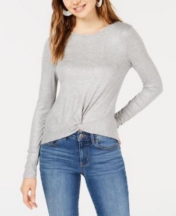 Planet Gold Juniors Twist-Front Sparkly Ribbed Top Juniors Juniors Clothing - Tops.