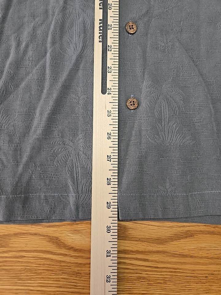 Tommy Bahama 100% Silk Button Up Shirt Mens Size Large Gray Palm Trees Hawaiian