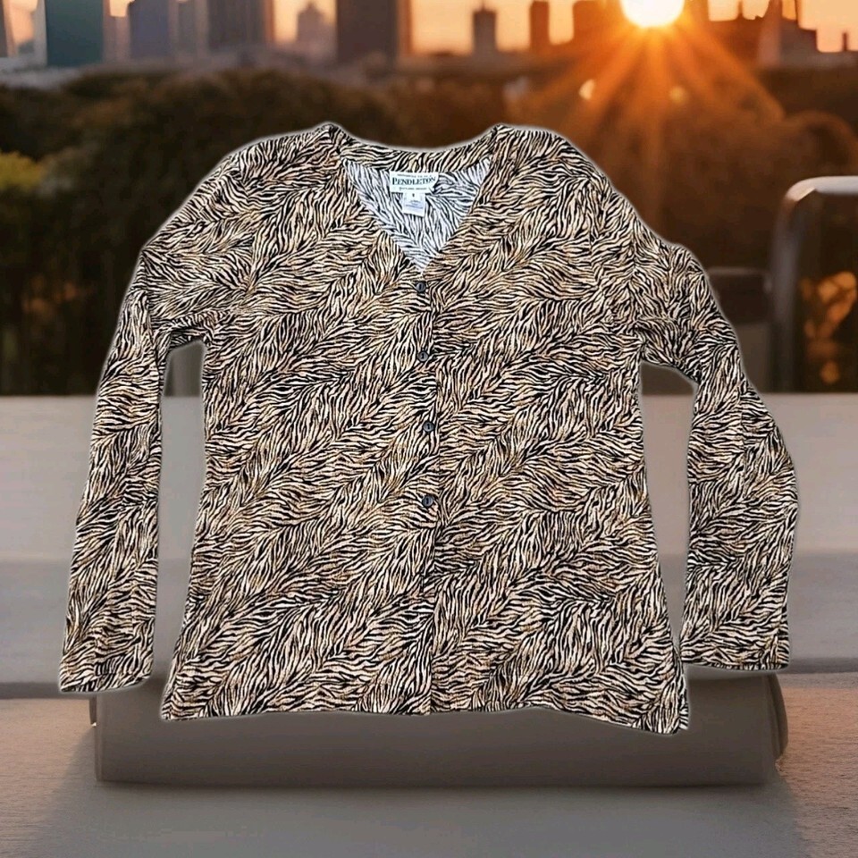 Pendleton Y2K Long Sleeve Animal Print Button Up Shirt Womans Size 8 Preppy
