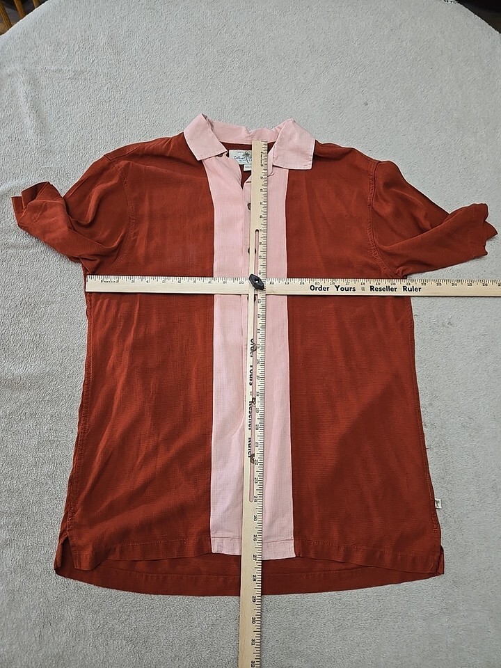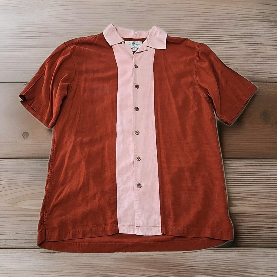 Island Shores 100% Silk Button Up Shirt Crimson Salmen Mens Size Medium L1