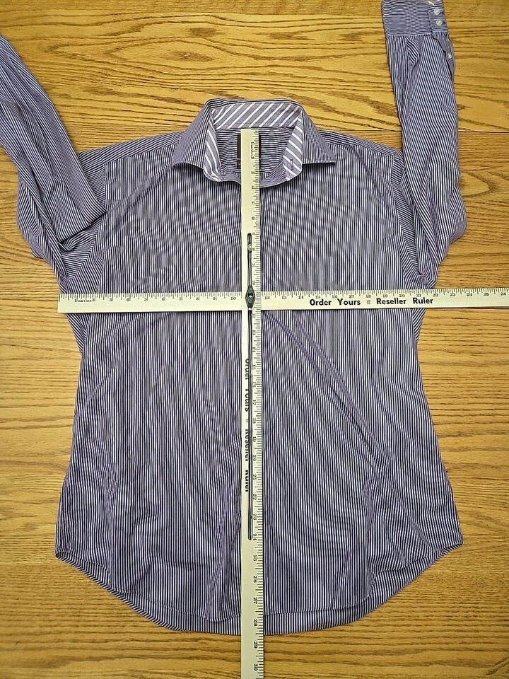 Tailorbyrd Button-Up Shirt Mens Size Medium Long-Sleeve Purple Gray Striped L3