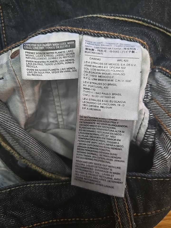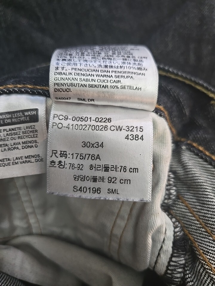 This is a pair of Levi's 501 Original Fit jeans for men, size 30x34. The jeans feature a straight leg design and a button fly closure. They are made from dark wash denim cotton material, with a 5-pocket design and a solid pattern. The jeans have a mid-rise waist of 30 inches and an inseam of 34 inches. They come in a blue color and are suitable for all seasons, including winter, summer, fall, and spring. The product is machine washable and made in Haiti.