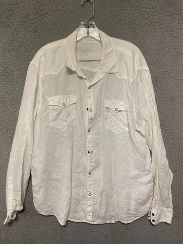 DKNY Jeans Pearl Snap Shirt Mens Size XL 100% Linen Embroidered Western