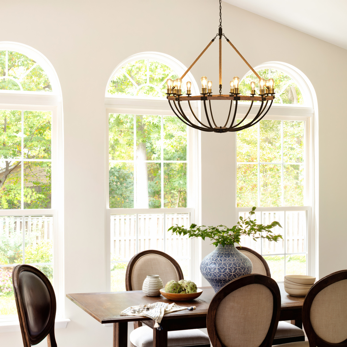 12-Light Farmhouse Wood chandelier,48" Black and 49 similar items