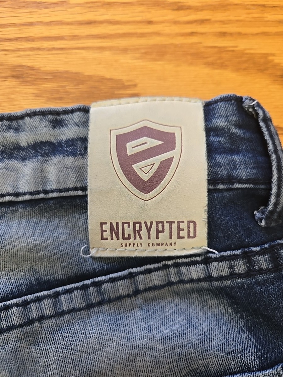 Encrypted Jean Shorts Acid Wash Blue Faded Denim Destressed Mens Aize 32 T1