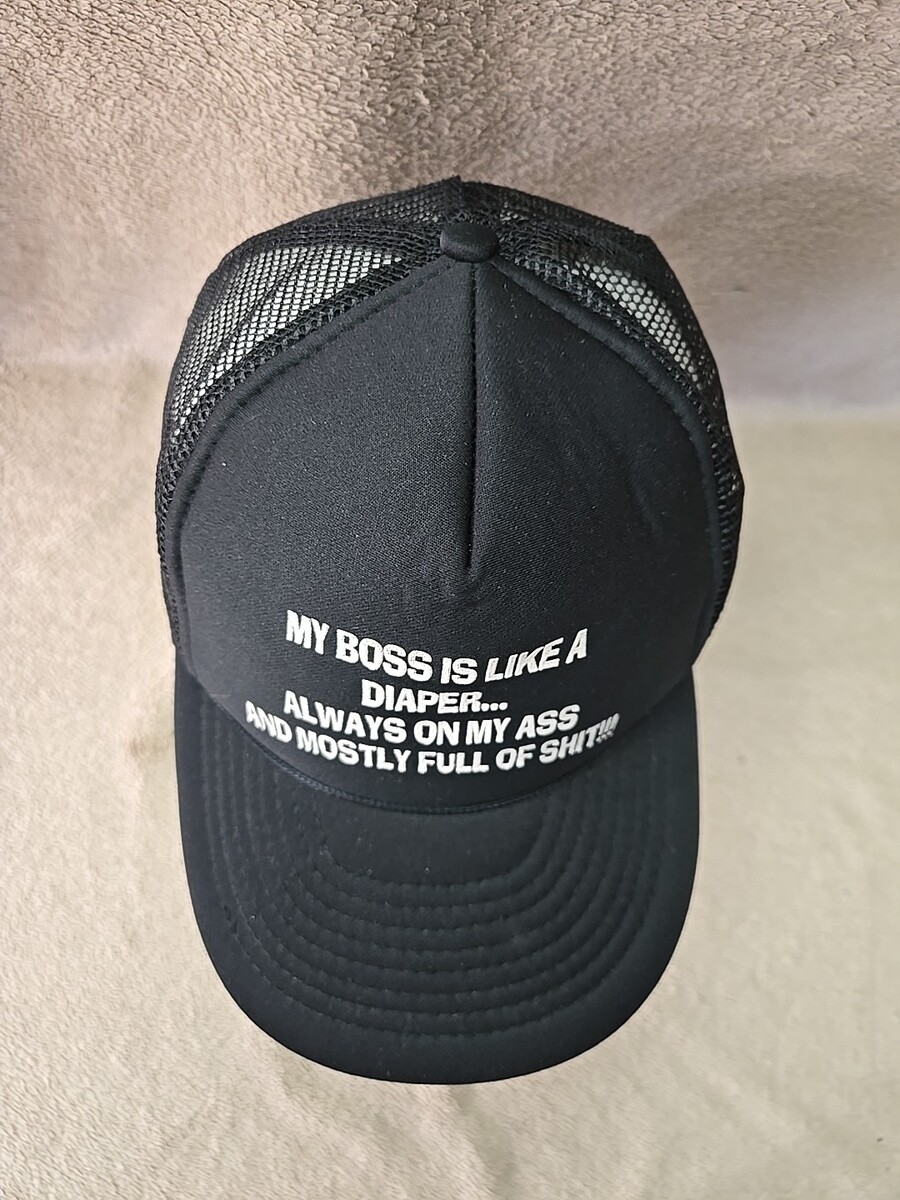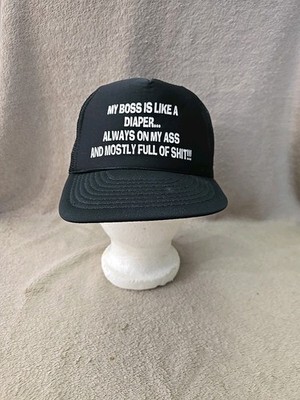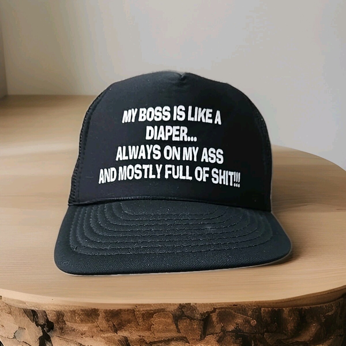 Funny Vintage My Boss is Like A Diaper Black Trucker Hat Cap Adjust Snap Mesh
