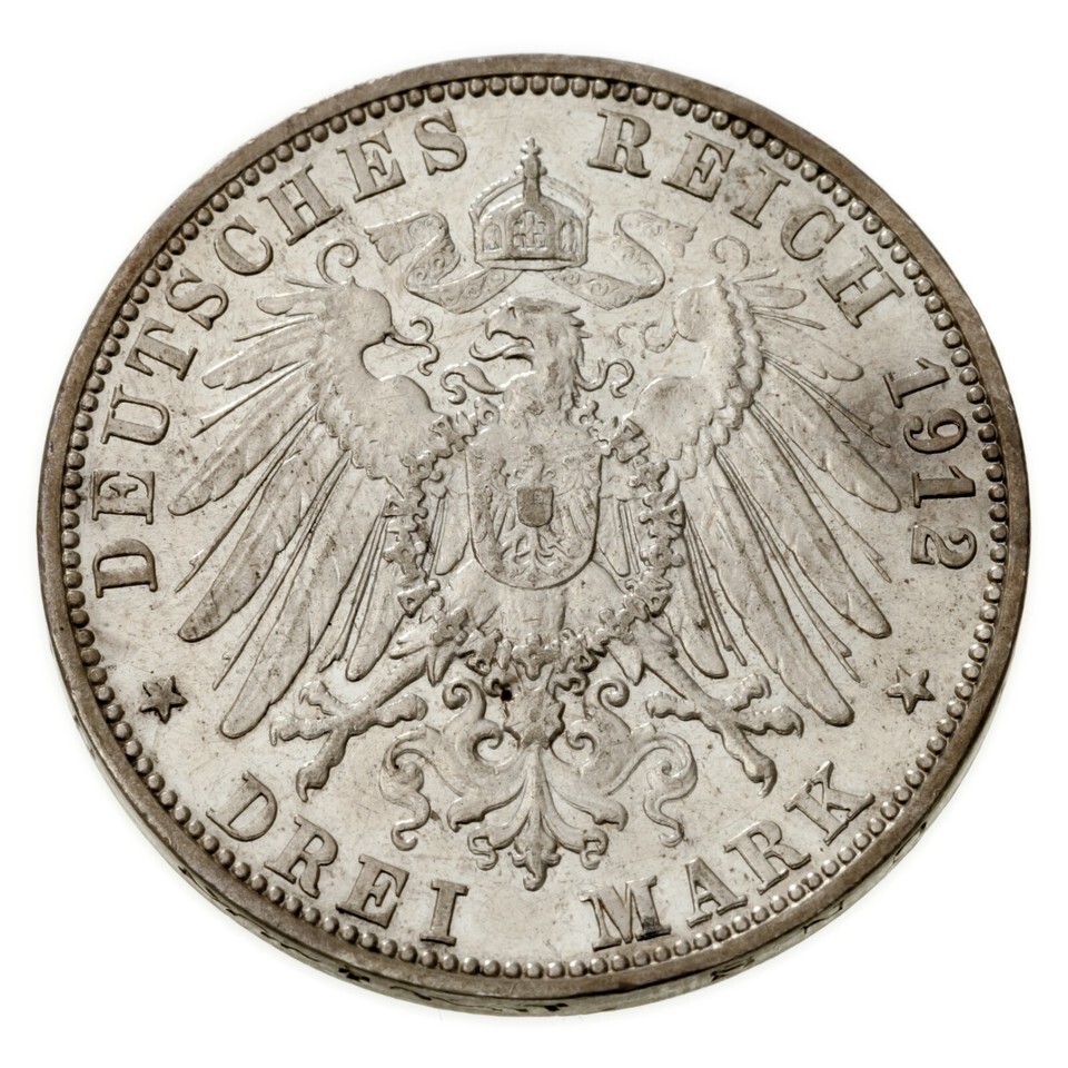 1912-G German States Baden 3 Mark (About Uncirculated, AU) KM# 280