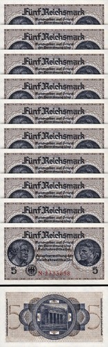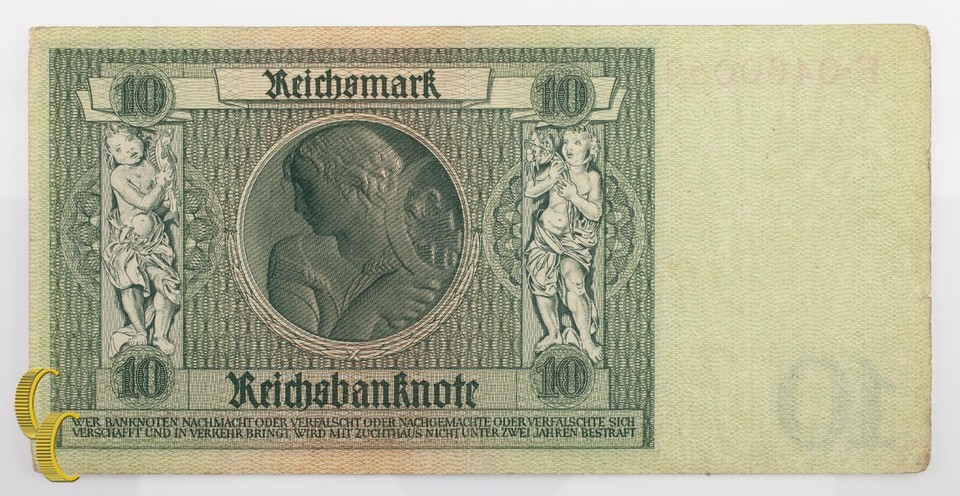 1944 German 10 Mark Note XF Allied Occupation World War II Extra Fine P#194b