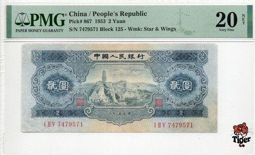Orange Yellow Ink underprint on obverse with pagoda at left and farming scene on the right. Reverse Brown Red
