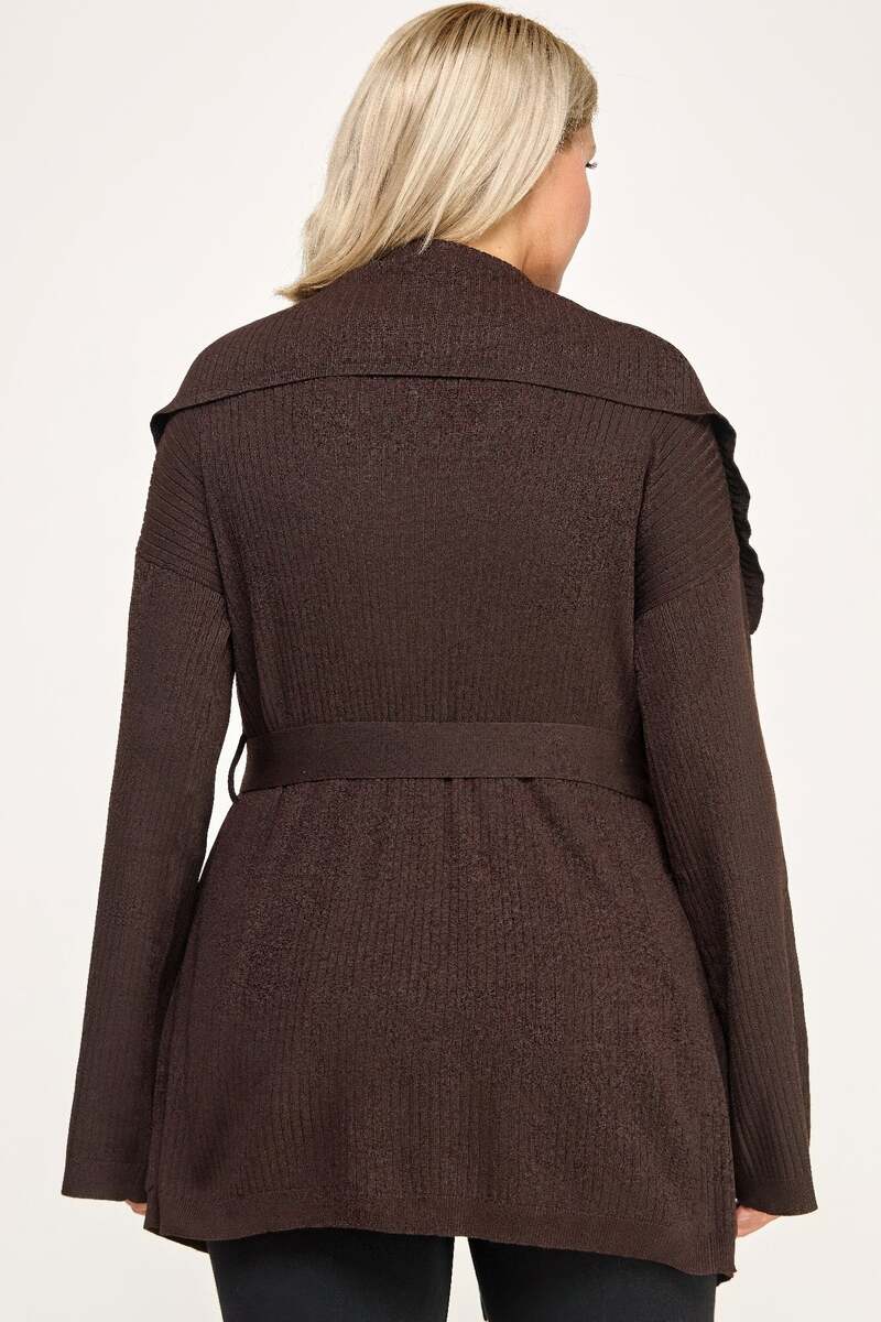 Plus Size Ribbed Wrap Cardigan With Waist Belt