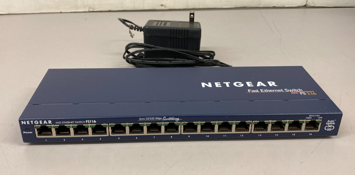 Netgear #FS116 Prosafe 16 Port 10/100 Ethernet Switch w Power Adapter
