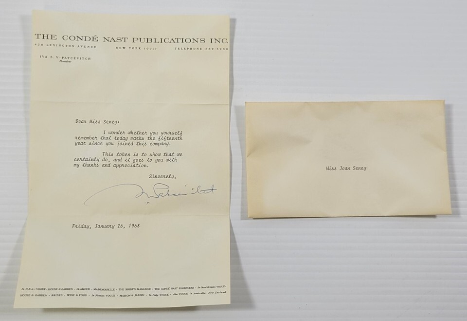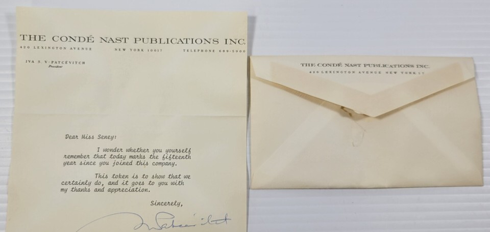 Includes an original employee anniversary letter on vintage Conde Nast Publications, Inc. letterhead