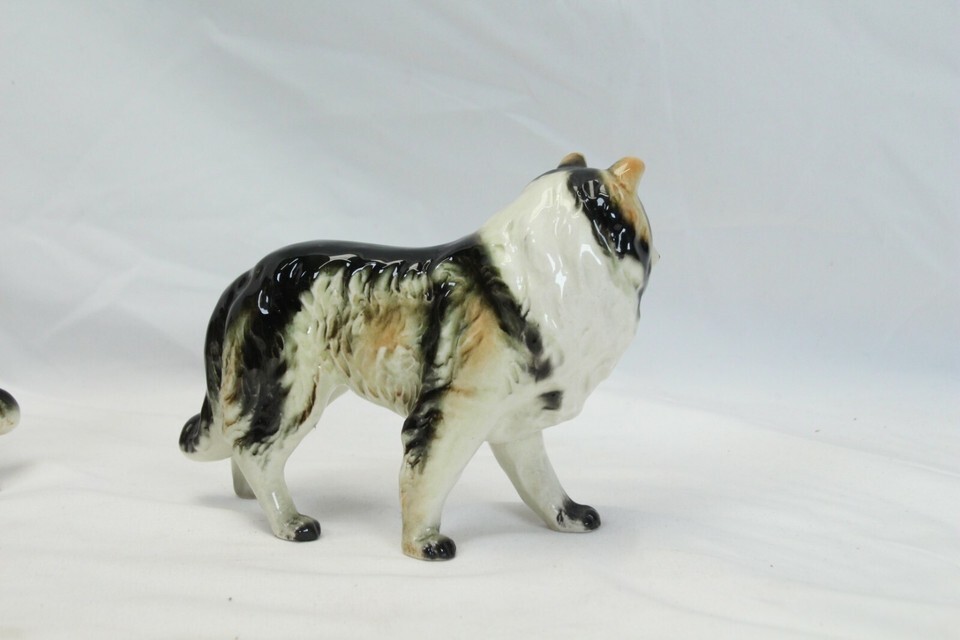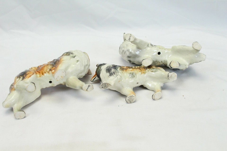 Porcelain Collie Figurines 6-1/4" x 5-1/2" and 5" x 4" Lot of 3 Made in Japan