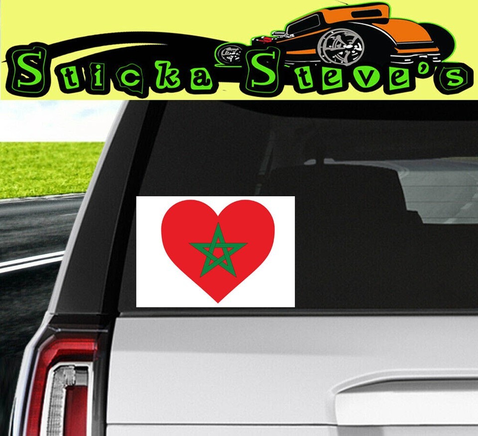 Morocco Heart Love Flag Vinyl Laptop, PC Phone or Bumper Sticker Decal