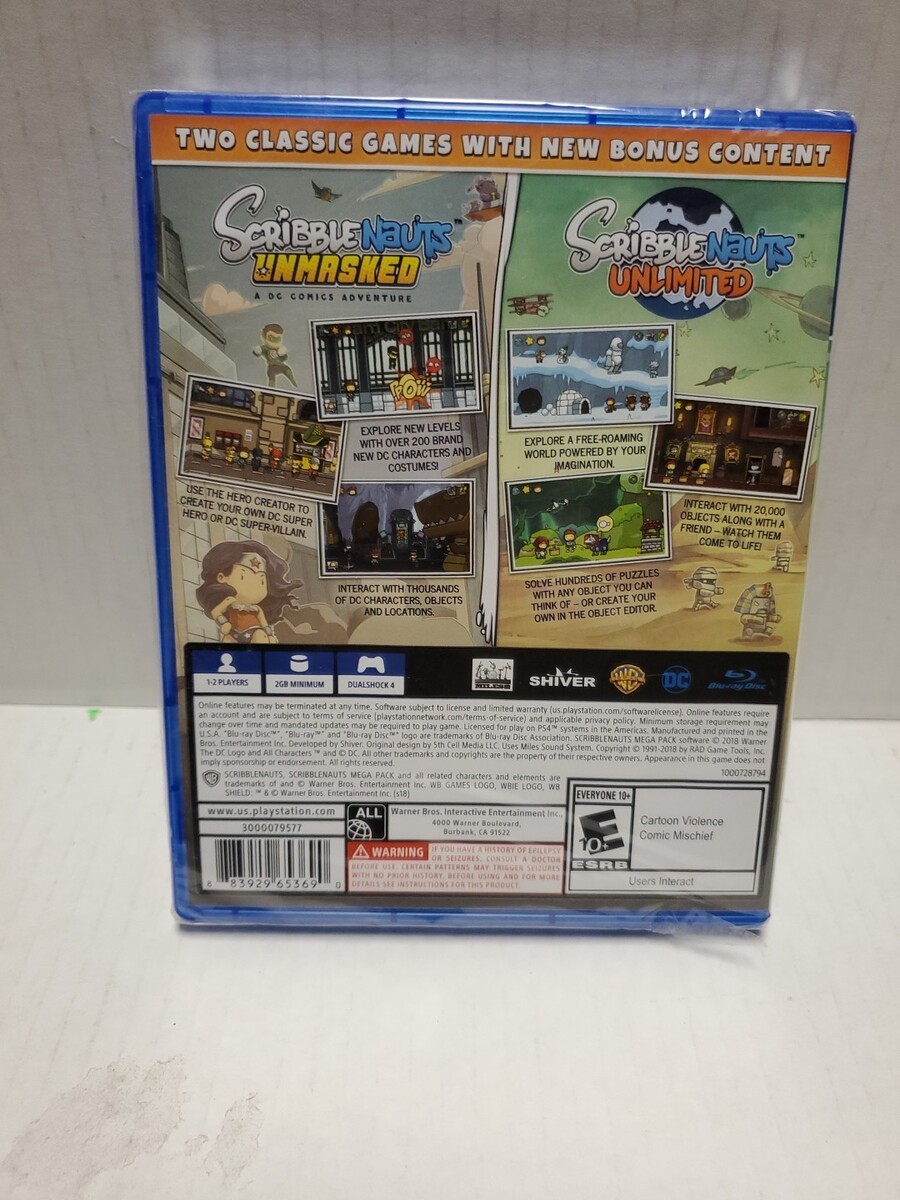 The Scribblenauts Mega Pack for Sony PlayStation 4 is a video game published by Warner Bros. Games. It is rated E for Everyone and includes the game Scribblenauts. This pack offers an immersive gaming experience where players can unleash their creativity by drawing objects and solving puzzles to help the lovable character, Crayon, rescue his friends from various challenging levels. With the combination of creativity, problem-solving, and exciting gameplay, the Scribblenauts Mega Pack is sure to provide hours of entertainment for players of all ages.