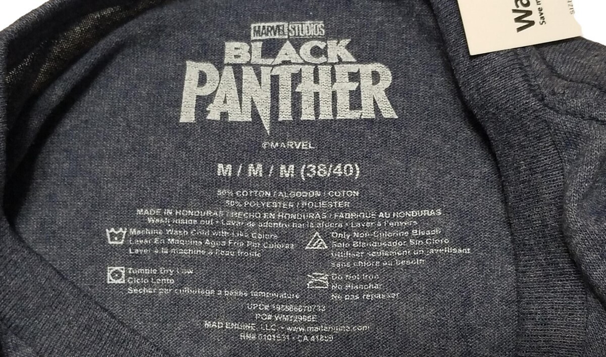The shirt's graphic print features the iconic Black Panther character and logo accents, making it a must-have for any Marvel fan. This T-shirt is available in size medium and is suitable for men. Get ready to personalize your wardrobe with this stylish shirt from Mad Engine.