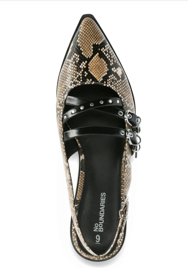 These Strappy Flats from No Boundaries feature a slingback strap and buckle detail. Fashionable and comfortable, these women's shoes are perfect for various occasions from casual days out, nights on the town or as a stylish work shoe. The snake print adds a touch of elegance and sophistication to the overall look, while the straps and silver-tone hardware provide a secure fit and added support.