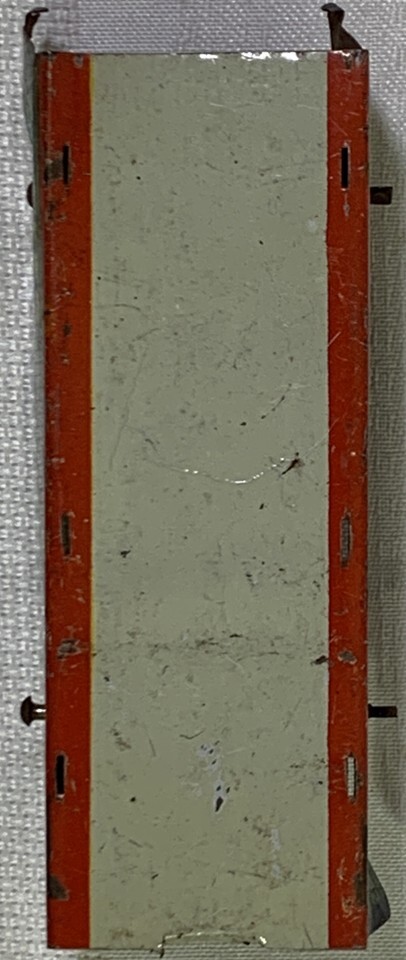 Perfect for display or play, this flat train car is a great addition to any collection. Its age level of 17 years and up ensures that it is a unique and rare find. Don't miss out on the opportunity to own a piece of history with this vintage tin litho flat train car.