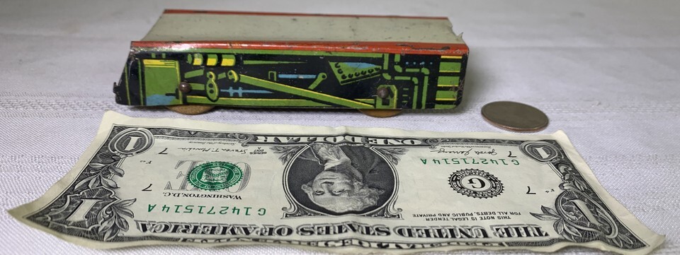 Vintage Tin Litho 4 wheel flat train car and 14 similar items