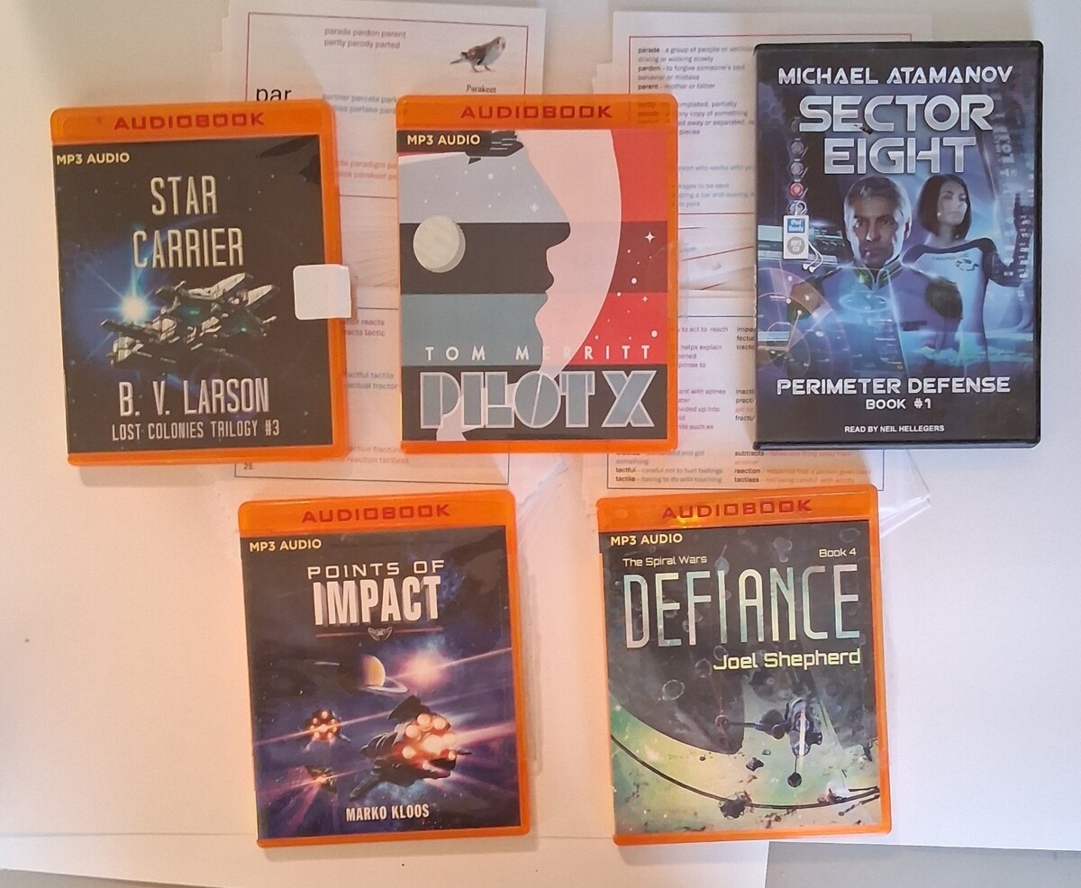10 Science Fiction Cs and MP3s by various authors.