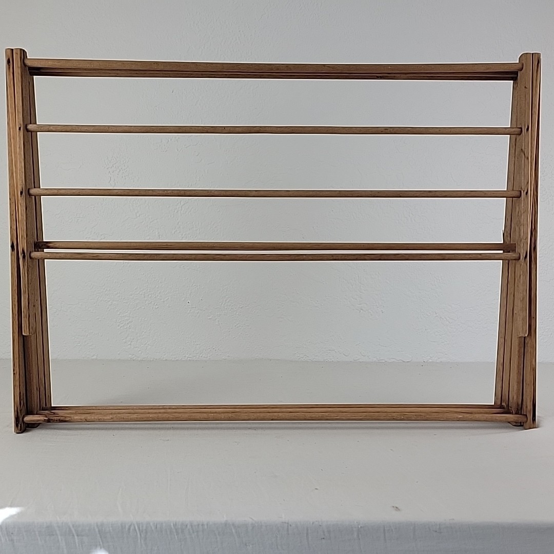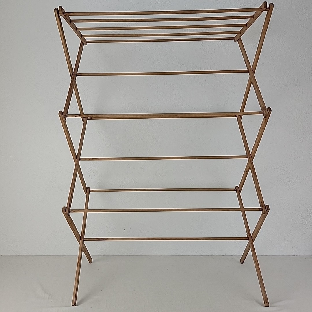 Vtg Antique Clothes Rack Wood Laundry Drying Folding Portable Space Saver RARE