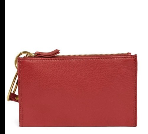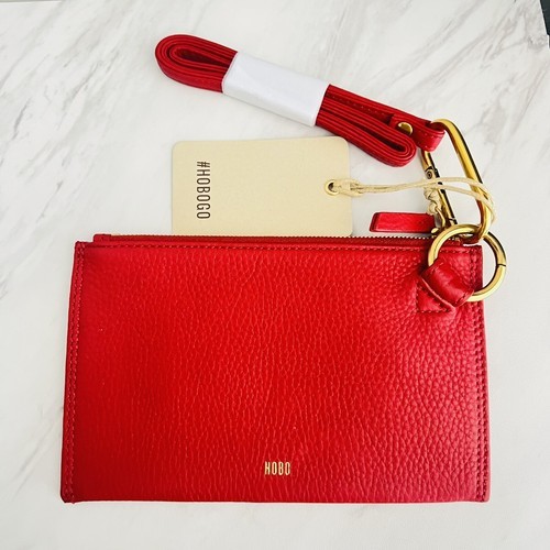 HOBO GO Tour Leather Zip Pouch Bag, Wristlet, with Lanyard, Red/Gold, NWT