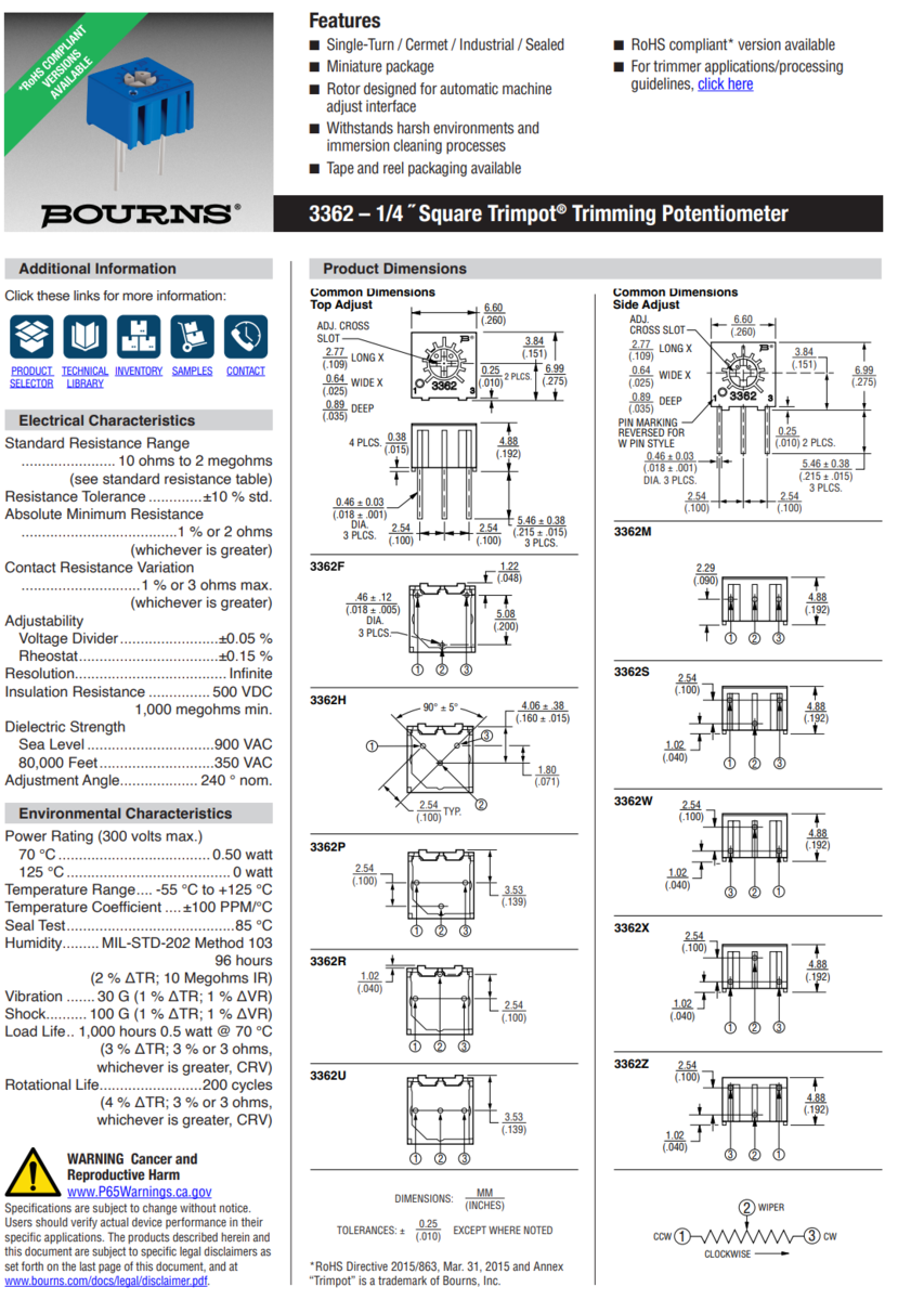 10 Pieces - 3362P-1-103LF Bourns Single Turn Cermet Trimmer Potentiometer 10K ohm Top Adjust 0.5W TRIMMER-3