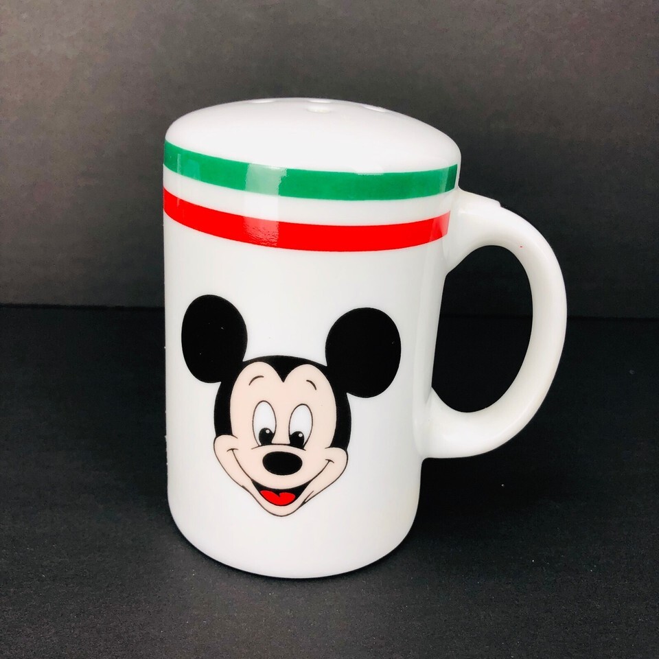 Disney Gourmet Mickey Mouse White Porcelain Cheese Shaker Red Green