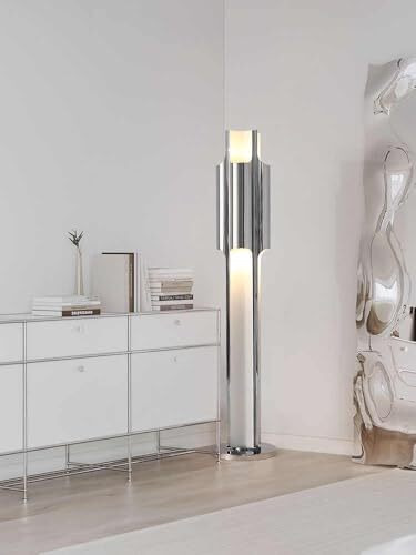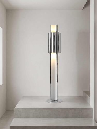 Product description: Elevate your interior design with this striking Postmodern Minimalist Chrome LED Floor Lamp. Standing at an impressive 56.7 inches tall, this sculptural lighting piece features a sleek tubular body with a high-luster chrome finish that adds sophisticated glamour to any space. The innovative dual LED system provides both upward and downward illumination, creating a dramatic architectural lighting effect perfect for luxury environments. With its compact 12.6-inch weighted base ensuring stability, this floor lamp makes a bold statement while maintaining clean, minimalist aesthetics. Ideal for contemporary luxury residences, hotel VIP lounges, conference rooms, or designer showrooms, this versatile fixture delivers warm, energy-efficient illumination suitable for spaces between 3-20 square meters. The durable, easy-to-clean stainless finish ensures lasting beauty in high-end commercial and residential settings.