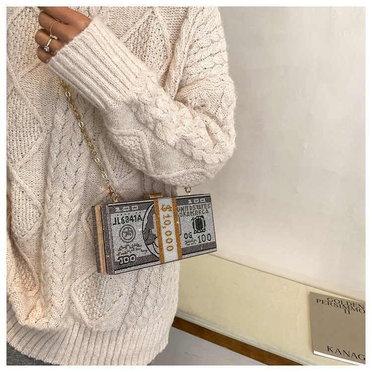 Luxury Diamond Crystal Money Stack Clutch Bag Sparkly Evening Purse with Gold