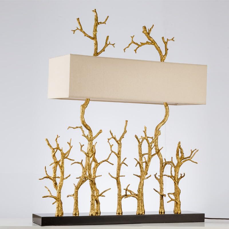 Product description: Transform your space with this striking bronze branch table lamp, a perfect marriage of artistic design and functional lighting. Standing at 26.8 inches long, 10.2 inches wide, and 36.2 inches tall, this modern lamp features an eye-catching forest-inspired sculpture finished in clear copper tones, crowned with a sophisticated rectangular shade. The premium alloy construction ensures durability while the artistic branch motif adds a touch of natural elegance to any setting. Compatible with E27 LED bulbs, it provides warm, efficient illumination ideal for bedrooms, offices, or living spaces. This versatile lighting piece serves as both a practical light source and a conversation-starting decorative element. Place it on your desk, sideboard, or console table to instantly elevate your interior design with its unique silhouette and luxurious metallic finish.