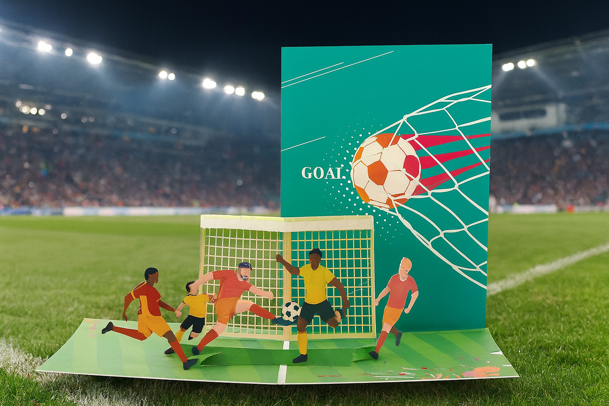 Football pop-up greeting card 15cm x 20cm UK saales only