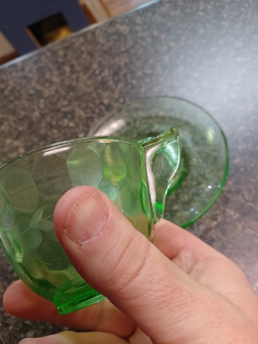Green Depression Saucer Tea Cup Jeanette and 35 similar items